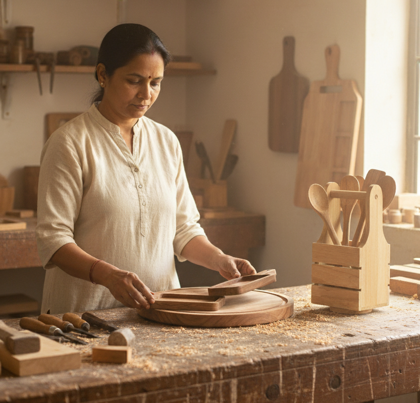 Our vision is to ensure every meal is cooked with safe, eco-friendly utensils, and every home celebrates the beauty of natural craftsmanship. We aim to become a trusted name that stands for health, sustainability, and timeless wooden artistry.