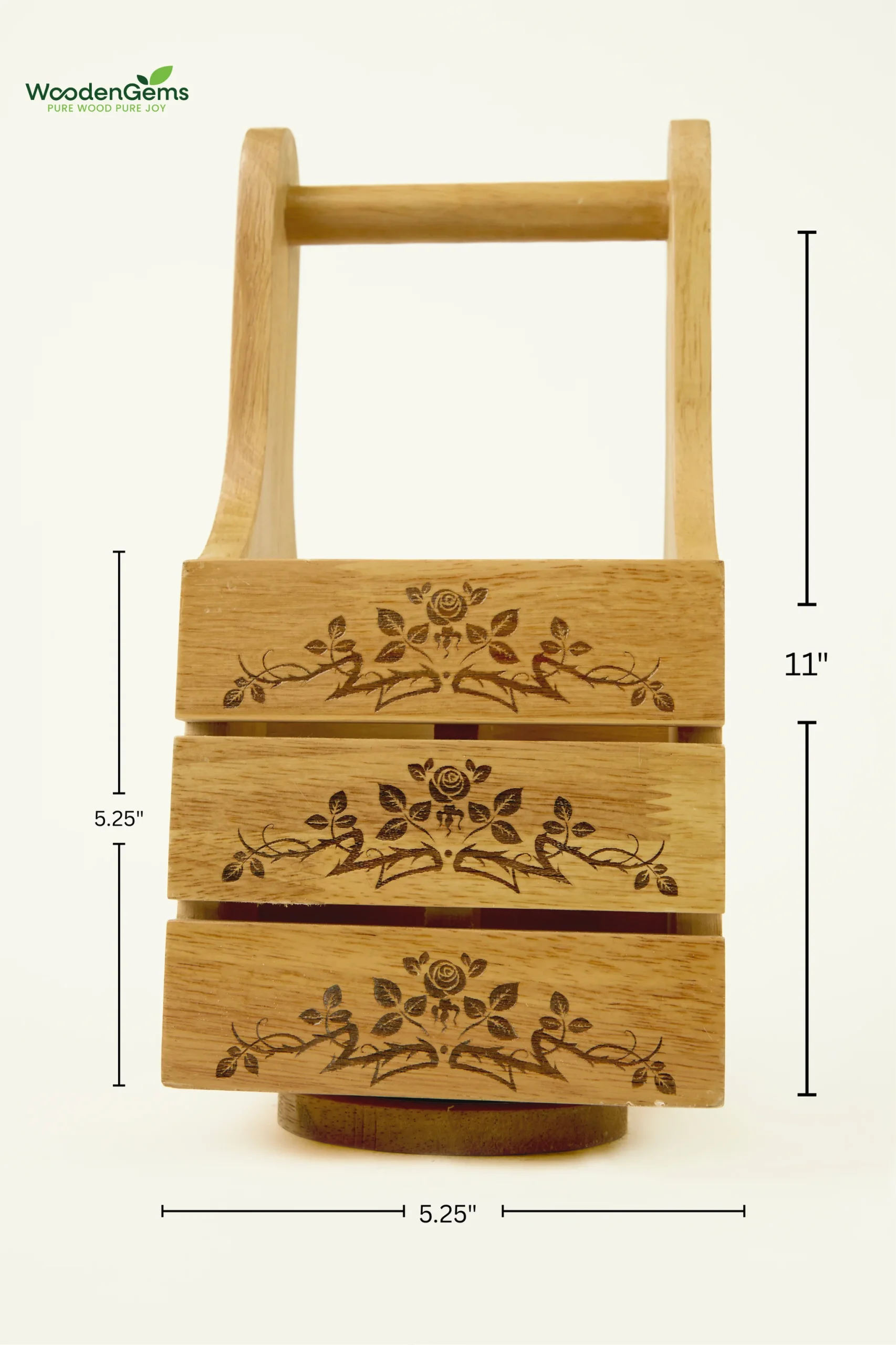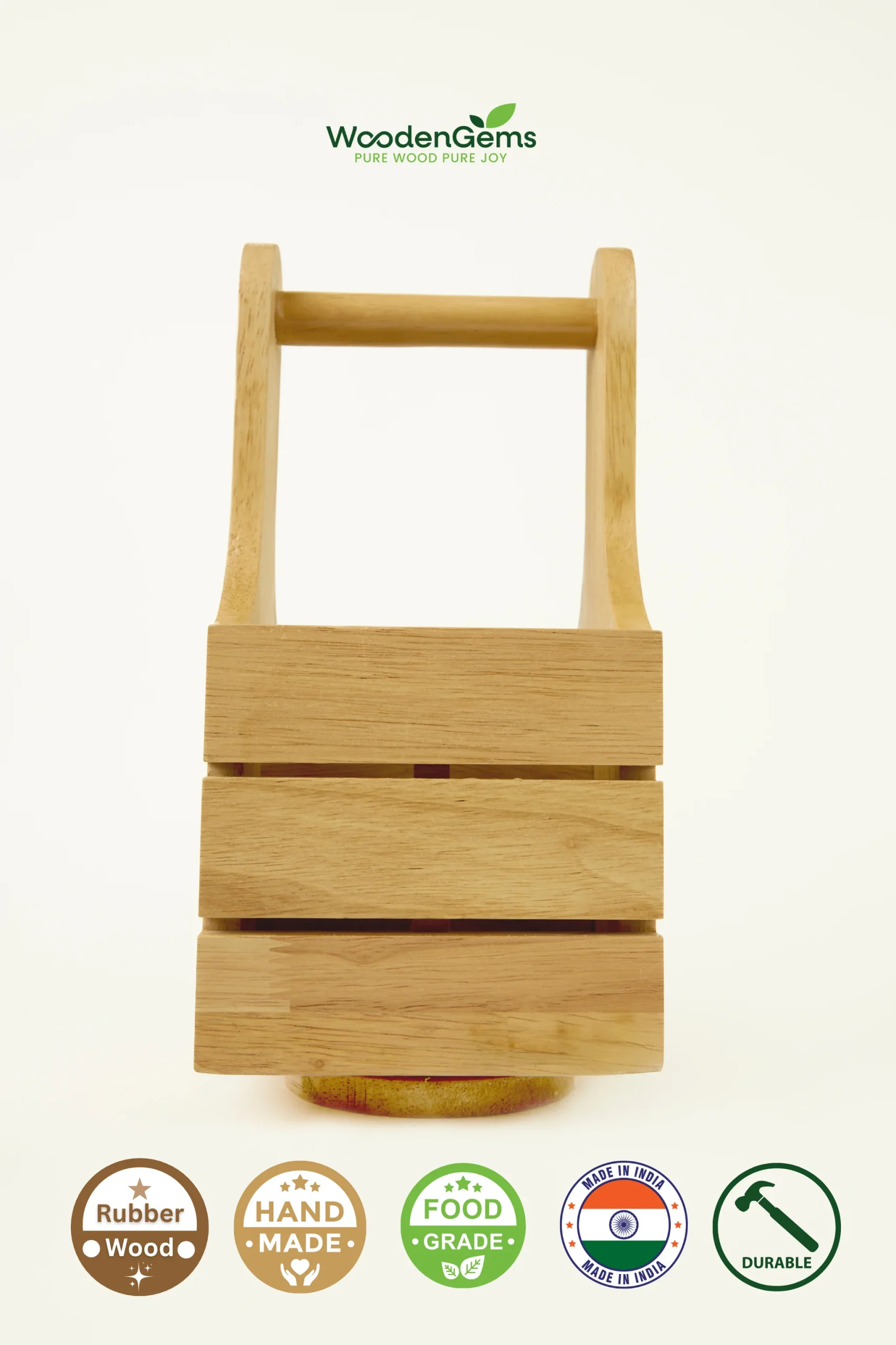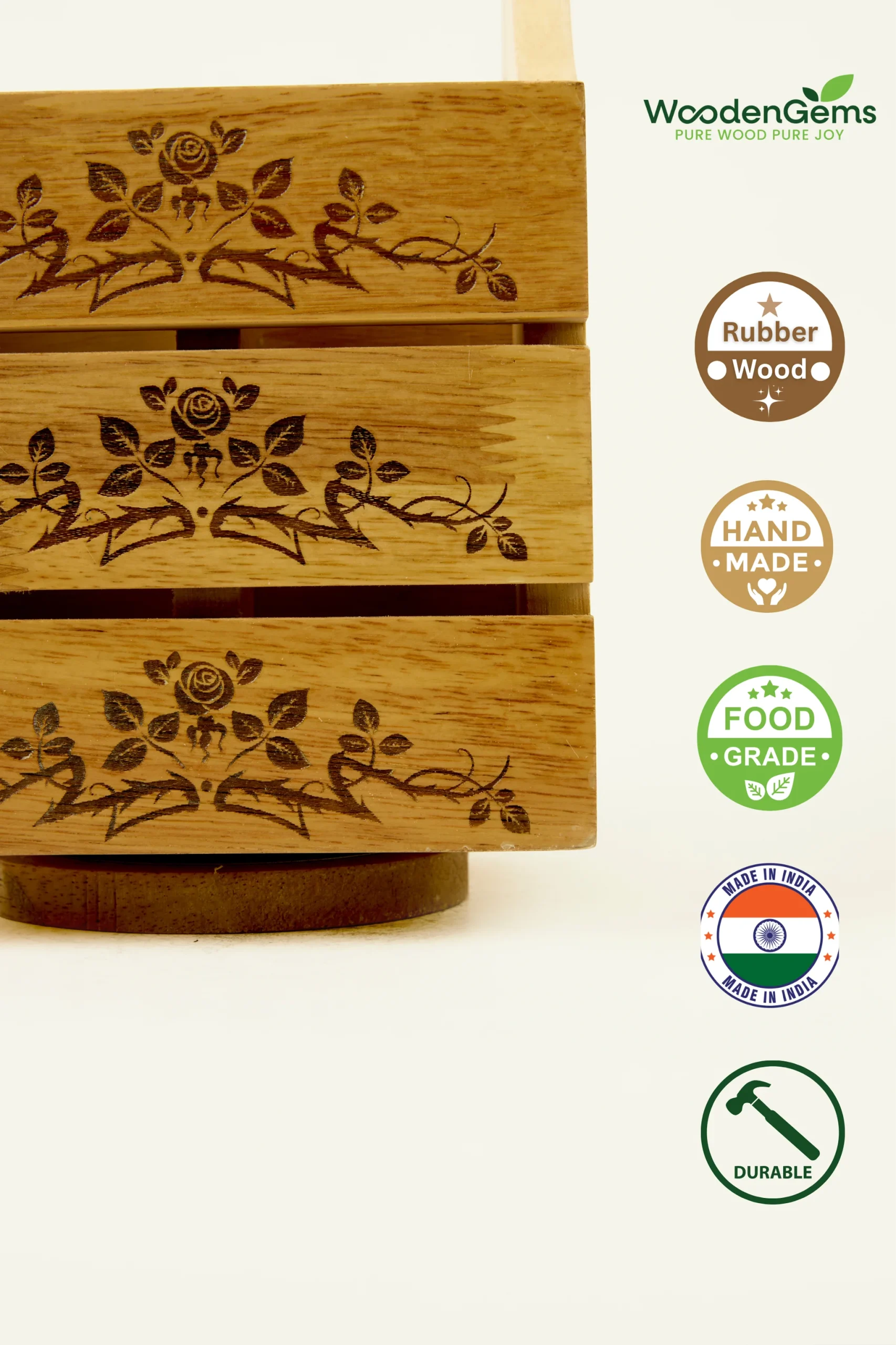 Premium Wooden Cutlery Holder: Crafted from solid, eco-friendly rubber wood for a natural look and long-lasting durability—ideal for kitchen and dining table organization.