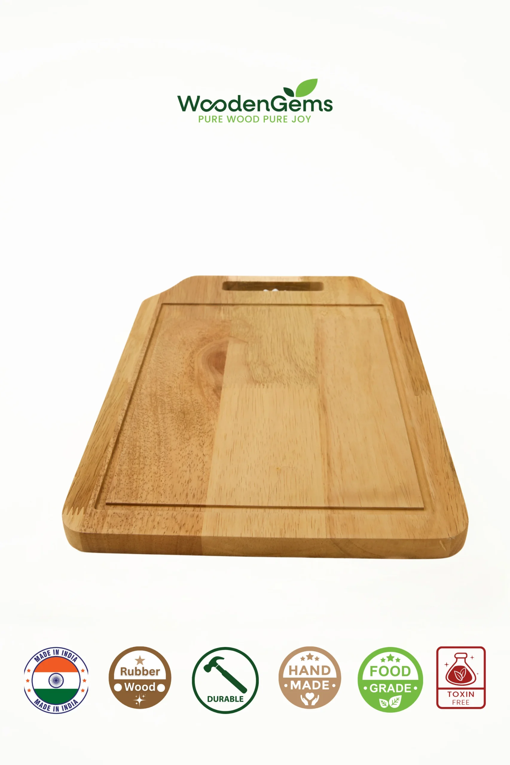Premium Rubberwood Cutting Board: Crafted from high-quality, food-grade rubberwood for lasting durability, smooth finish, and safe everyday use.